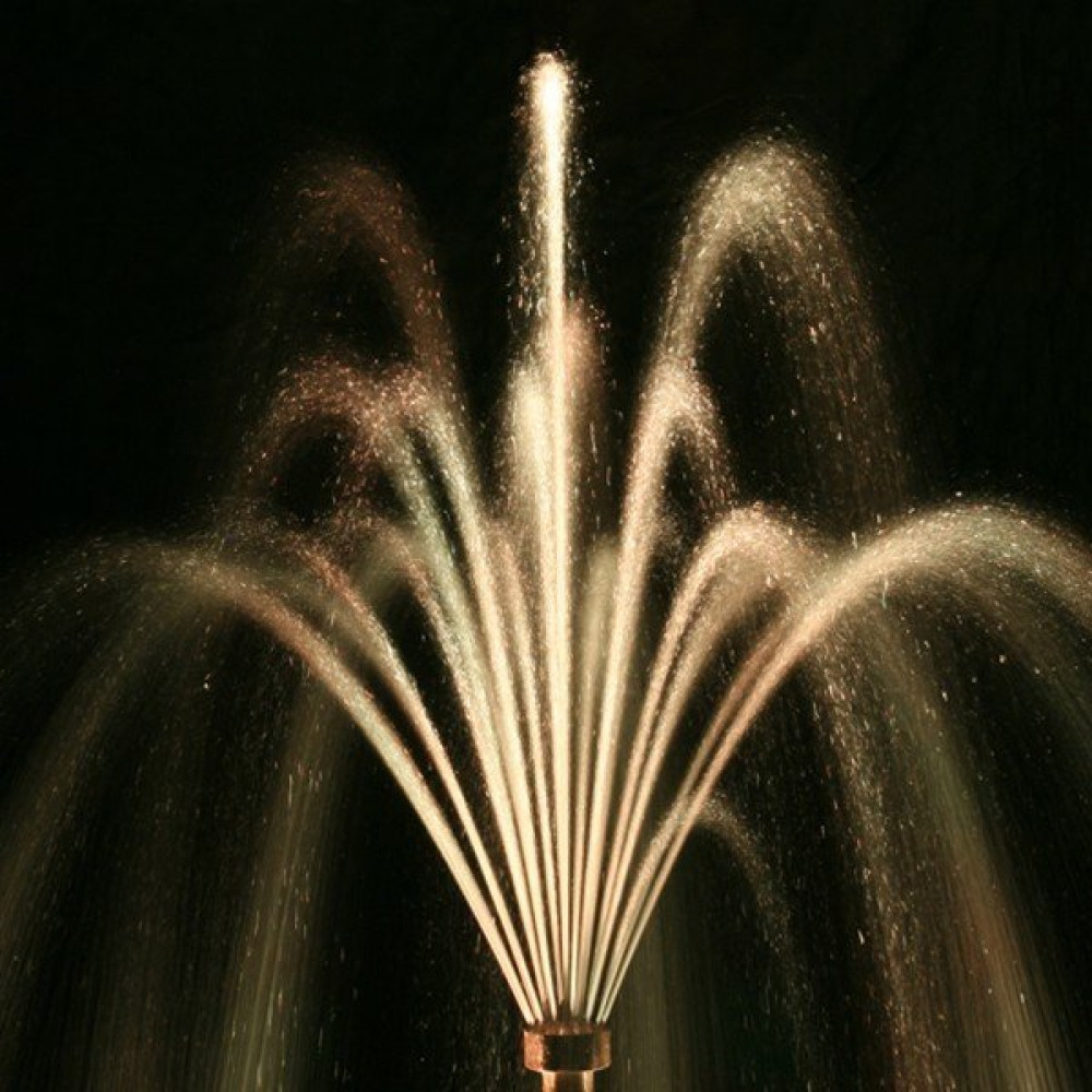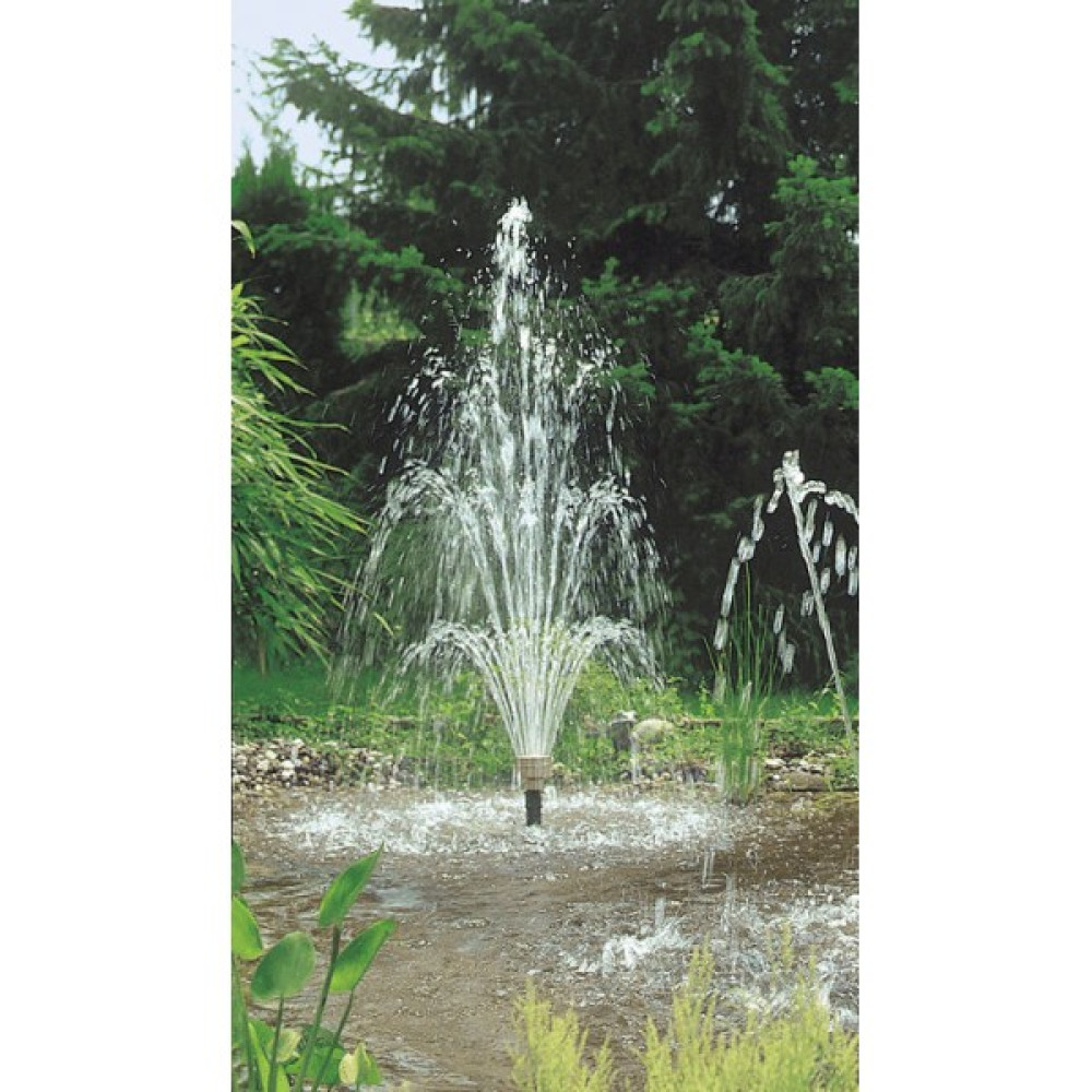 Фонтанная насадка SA 40S (вулкан) имеет 3 контура регулируемых форсунок, что придает высокий декоративный эффект и возможность простого регулирования струй. С помощью насадки для фонтанов SA 40S можно создать водную картину высотой до 6м. Подходит для насосов Pondtech SP620-SP630.