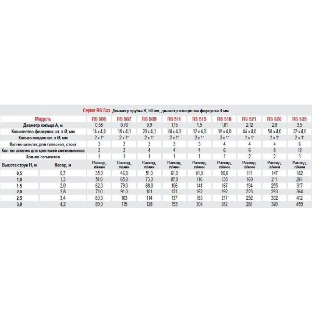 Фонтанное кольцо PR-500 ø0.5m. Гидравлические таблицы смотрите в доп. фото товара.
