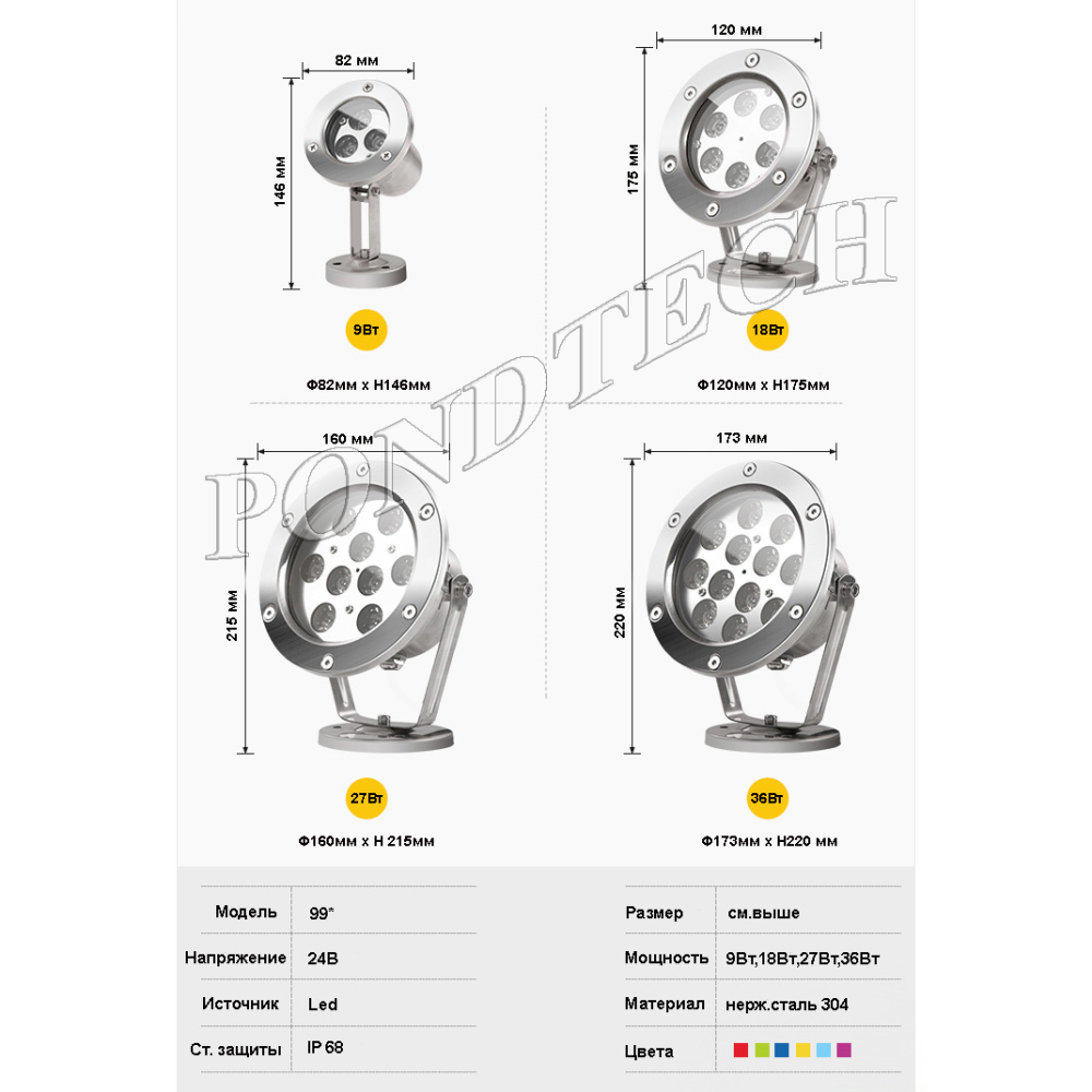 Подводный светильник Pondtech 992Led1 (Full RGB)