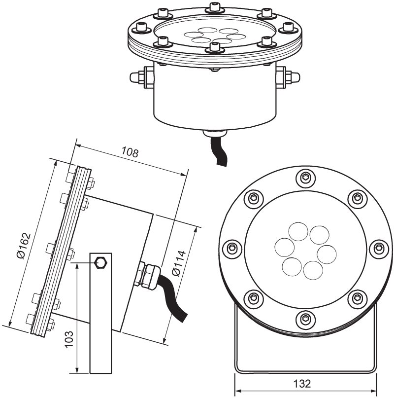 Light Fixture Cree 27W/12/24V/1PG16/Cable RGB 3 in 1, with «U»