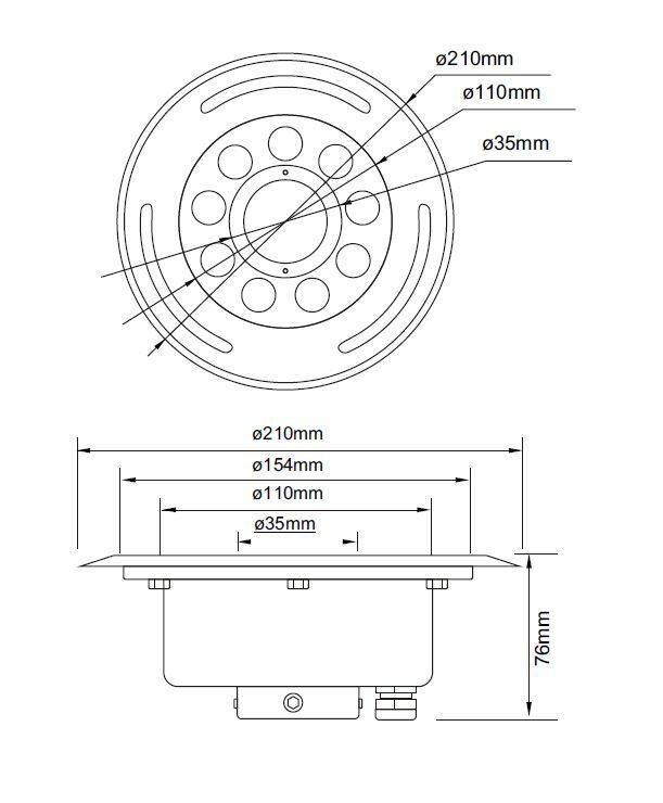 RGB-DMX 27W/24V/1 CAB.O Подводный светодиодный светильник 210 мм