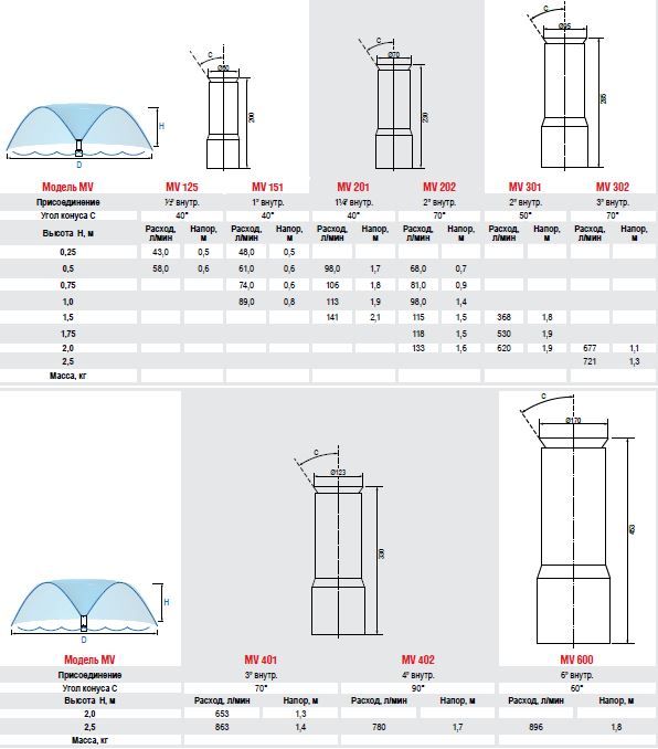 - Высота водной картины max, м: 2,5