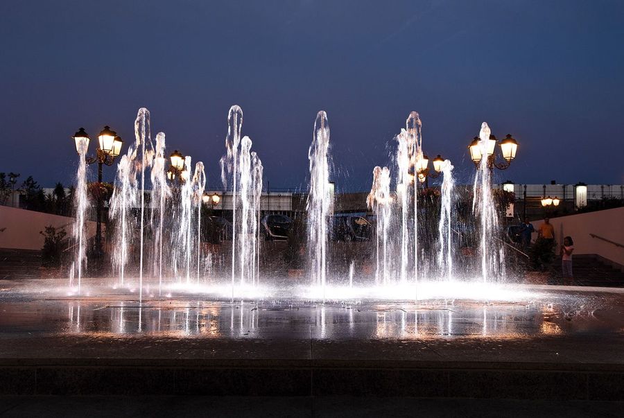 Моноструйная насадка, дающая столб воды высотой до 140 метров. Шарнирное соединение насадки обеспечивает возможность образования как строго вертикальной, так и параболической водной картины.