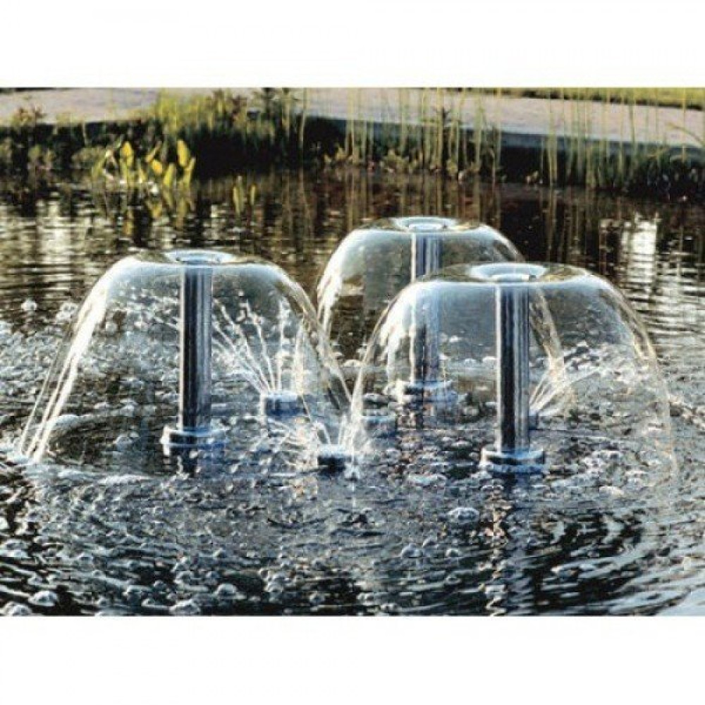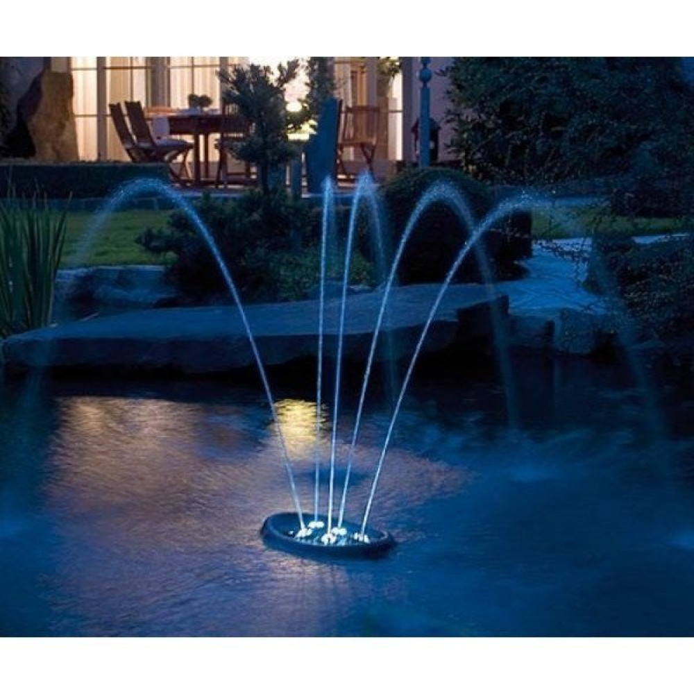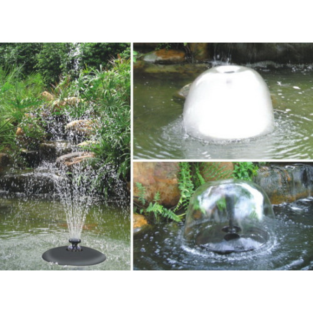 Фонтанные комплекты обеспечивают неповторимую атмосферу возле природных водоемов. Комбинация различных фонтанных насадок придает водному ландшафту неповторимый вид. Плавающий фонтан укомплектован насосом, поплавком и фильтрующей сеткой. большой фильтр из нержавеющей стали для максимальных интервалов очистки возможность установки разнообразных светильников светильники и насадки приобретаются отдельно