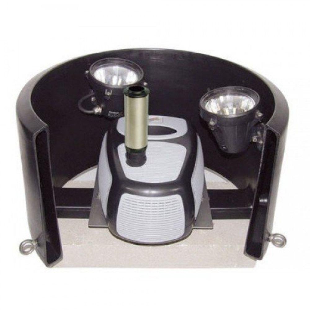 Готовая фонтанная установка с автоматической сменой водных картин за счет последовательного переключения встроенного гидравлического клапана. Бесступенчатое регулирование продолжительности действия каждой из водных картин, простые регулировки для установки высоты каждого фонтана. Имеется встроенная подводная подсветка с четырьмя светофильтрами разных цветов. Устанавливается в любую подходящую емкость и начинает работать сразу же после включения в электрическую сеть.