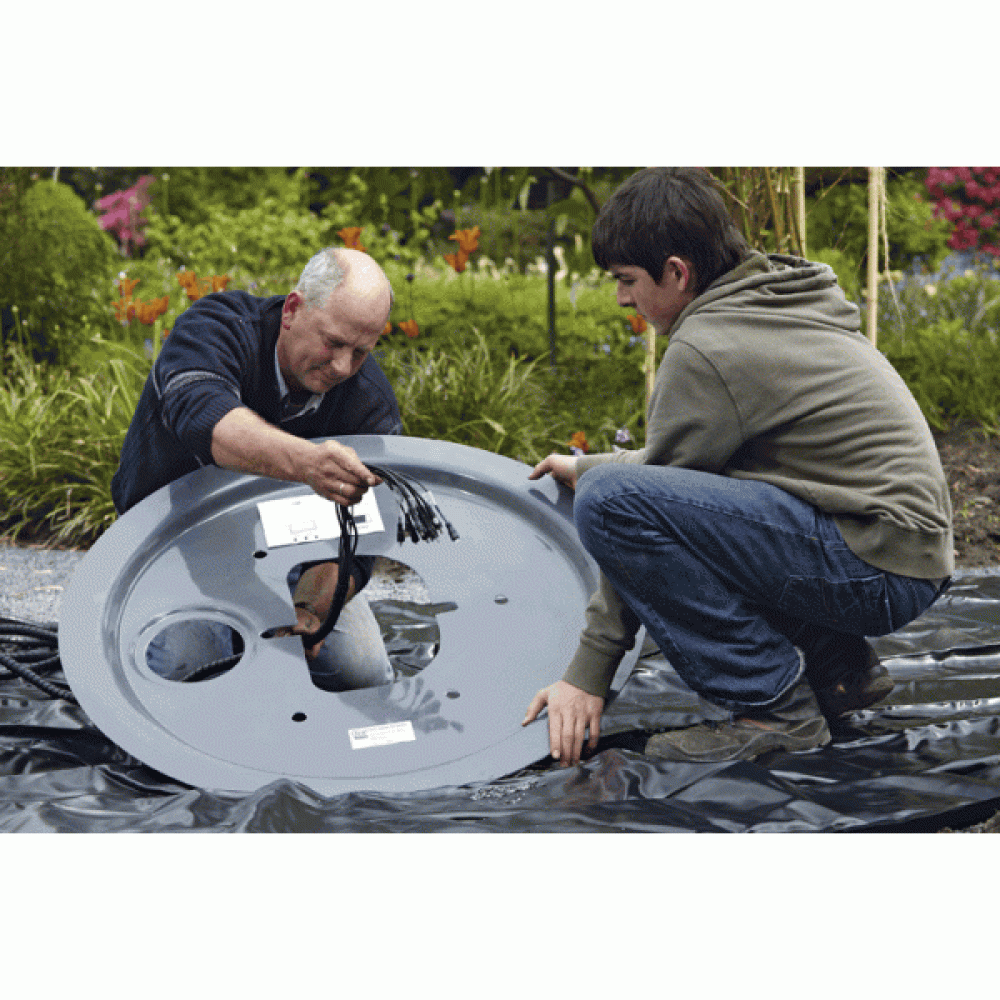 Крышка для чаши декоративных фонтанов. Имеет отверстия для стекания воды и вывода шлангов. Засыпается слоем гальки и монтируется на одном уровне с поверхностью земли. Диаметр крышки 1000 мм. Материал стеклопластик.